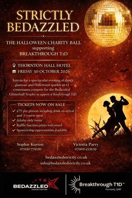 The Bedazzled Strictly Halloween Ball is a glamorous charity evening of dining, dance and entertainment, inspired by the magic of Strictly Come Dancing. The event will take place on Friday 30th October 2026 at Thornton Hall Hotel.